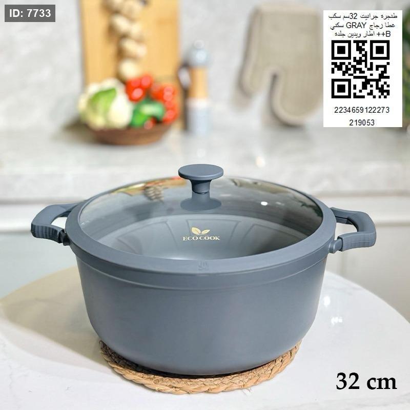 طنجره جرانيت 32سم سكب غطاء زجاج إطار سيليكون