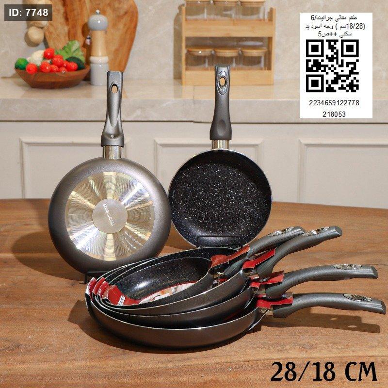 طقم مقالي جرانيت 6 / (28.18سم ) وجه اسود يد سكني ++ص 5