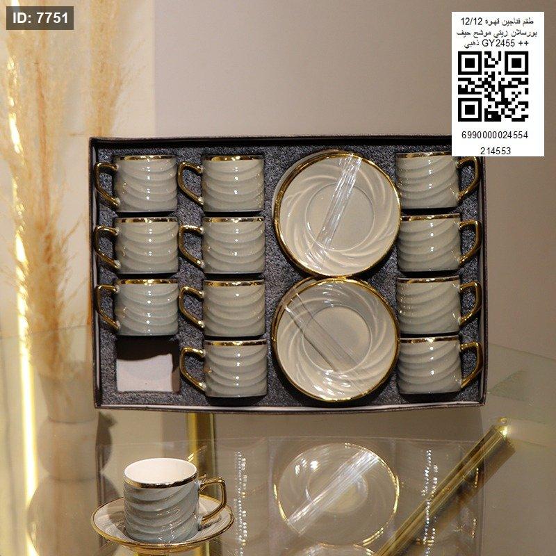 طقم فناجين قهوه 12/12 بورسلان زيتي موشح حيف ذهبي GY2455++
