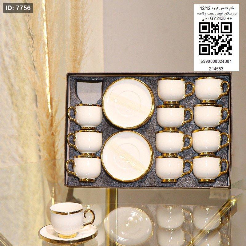 طقم فناجين قهوه 12/12 بورسلان ابيض حيف وقاعده ذهبي GY2430++