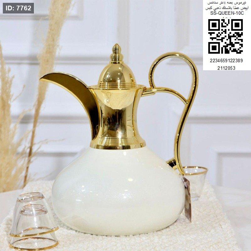 تيرموس بطة 1لتر ستانلس ابيض غطاء بلاستك ذهبي كبس SS_QUEEN_10C+خ.ت