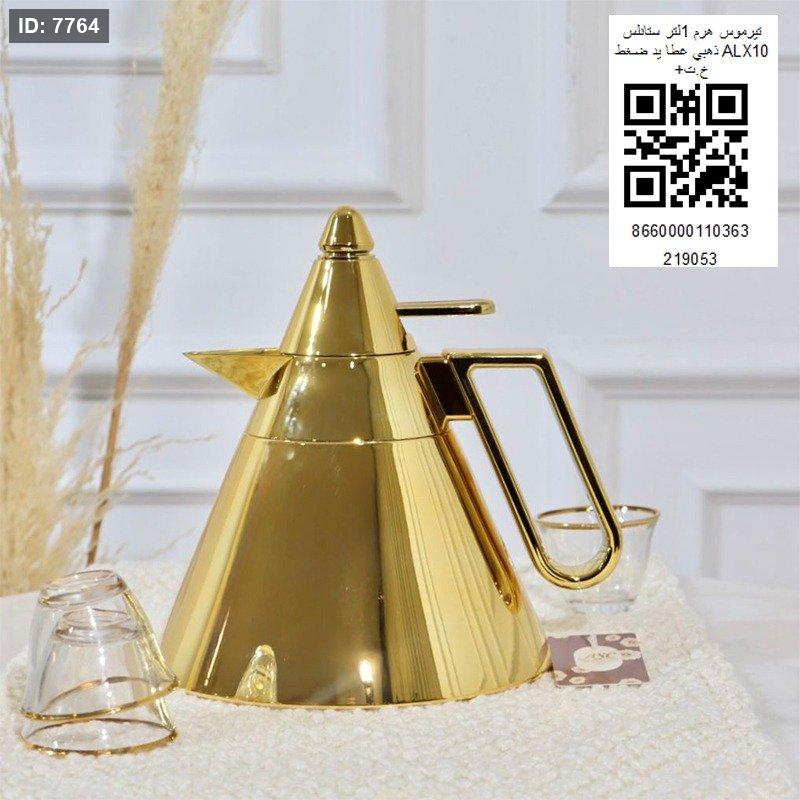 تيرموس هرم 1 لتر ستانلس ذهبي غطاء يد ضغط ALX10+خ.ت
