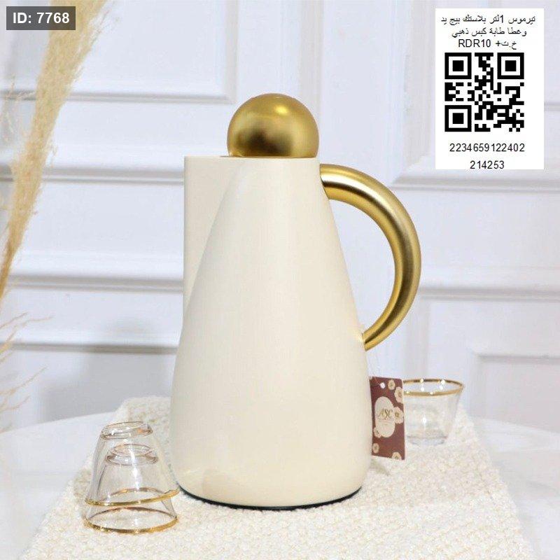تيرموس 1 لتر بلاستك بيج يد وغطاء طابه كبس ذهبي RDR10+خ.ت