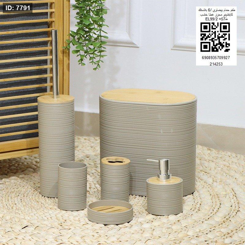 طقم حمام بيضاوي /6 بلاستك كابتشينو محزز غطاء خشب EL99/2=ط57