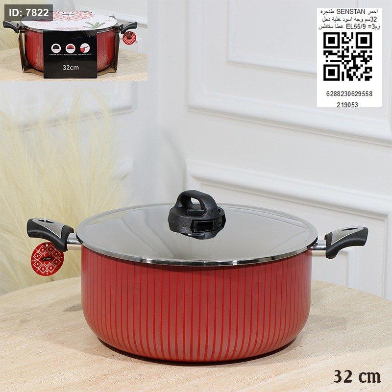طنجرة SENSTAN احمر 32سم وجه اسود خلية نحل غطاء ستانلس EL55/9=رم3