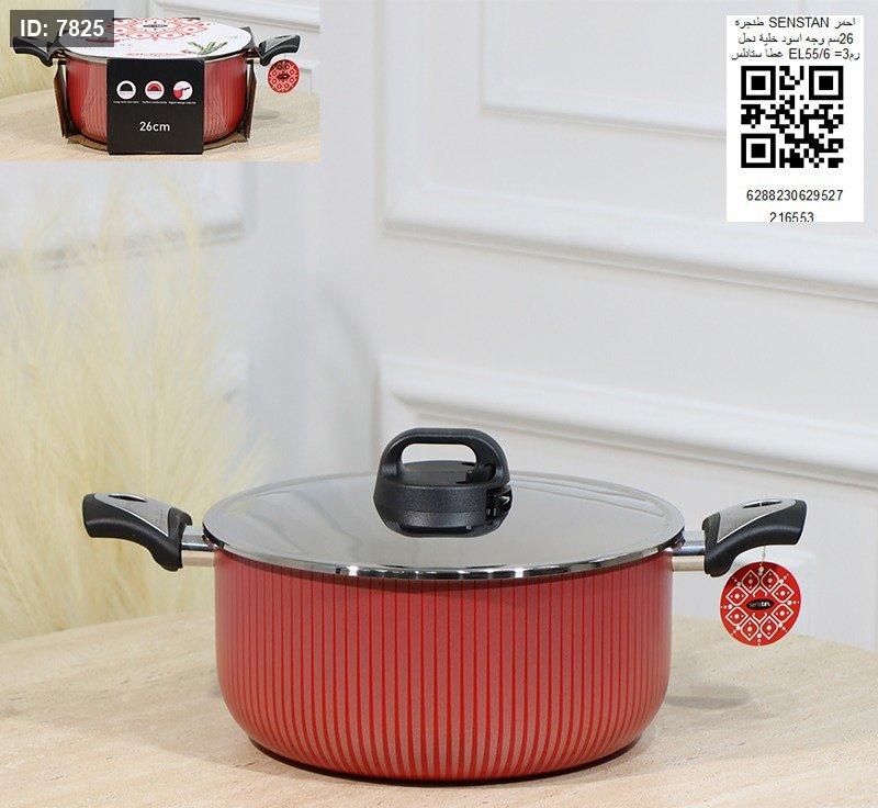 طنجره SENSTAN احمر 26سم وجه اسود خلية نحل غطاء ستانلس EL55/5=رم3