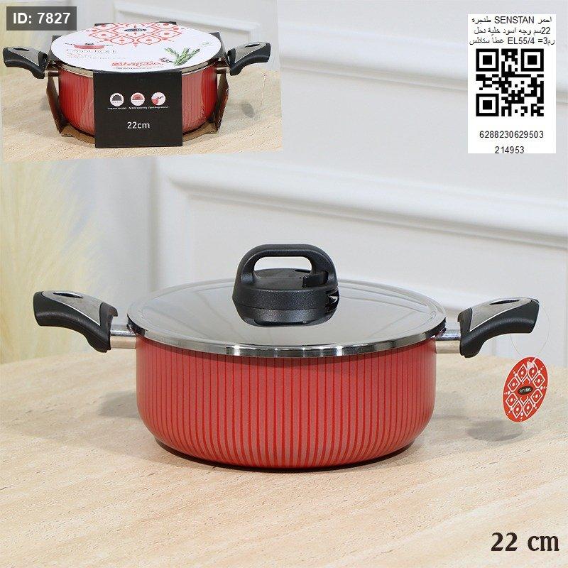 طنجره SENSTAN احمر 22سم وجه اسود خلية نحل غطاء ستانلس EL55/5 =رم3