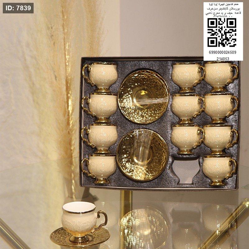 طقم فناجين قهوه 12/12 بورسلان كابتشينو مزخرف قاعده حيف ويد معرج ذهبي GY2450++