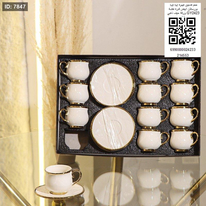 طقم فناجين قهوه 12/12 بورسلان ابيض قدره نقشة ورقه حيف GY2423++
