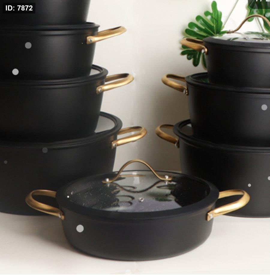 مقلى 28سم جرانيت اسود ماط يدين ذهبي غطا زجاج %ط5