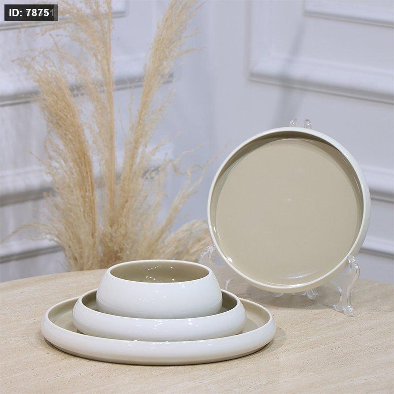 طقم صحون بورسلان /24 ابيض وجه زيتي JEC767S27++