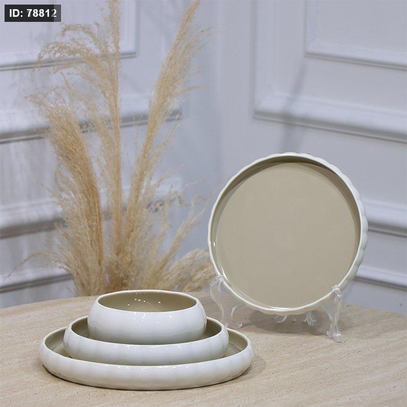 طقم صحون بورسلان/ 24 ابيض محزز وجه زيتي JEC8206S27++