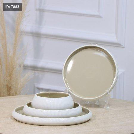 طقم صحون بورسلان/24 ابيض محزز وجه بستاشيو JEC8190S27++