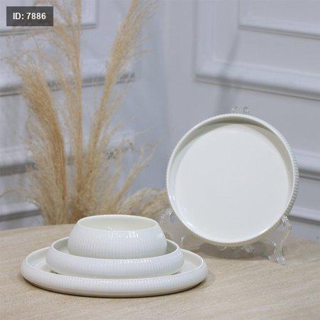 طقم صحون بورسلان / 24 ابيض محزز وجه ابيض JE8109++