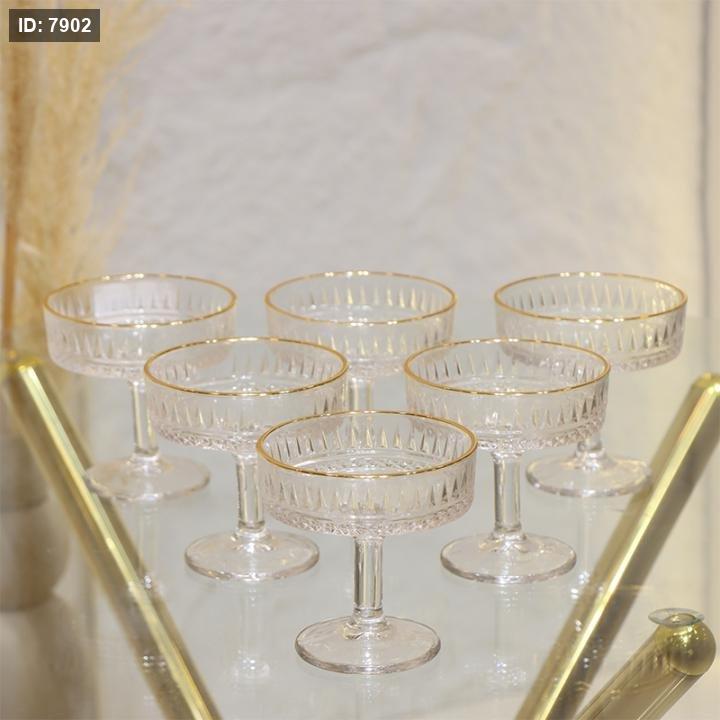 طقم كاسات جلي 6 زجاج ساده سبله حيف ذهبي برجل EL131/6=ك8