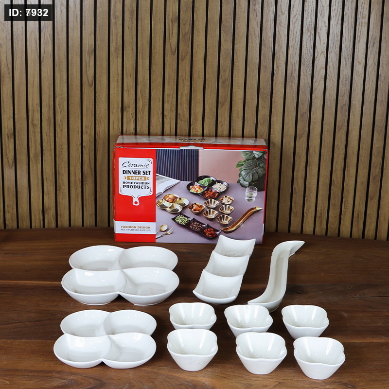طقم ضيافه 10 قطع بورسلان ابيض شكل ورده ZD8314++لو