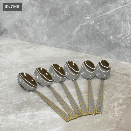 طقم معالق صغير /6 ستانلس ستيل يد فضي مثلج حيف ذهبي ZD73/3=ط7