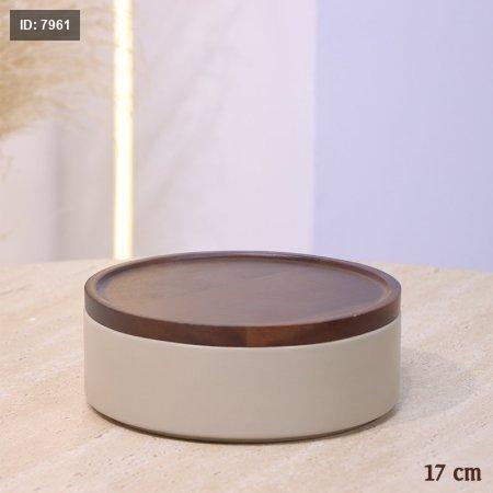 مضيفة بورسلان 17 سم مدور بيج ماط غطاء خشب بني غامق YM1012++ع1