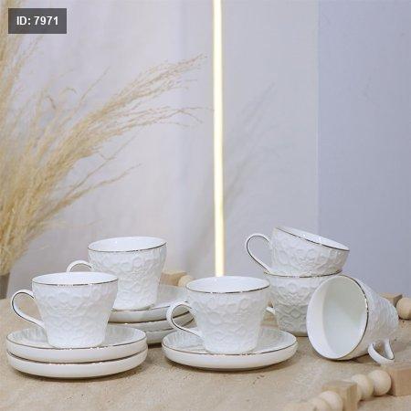 طقم فناجين قهوه 6/6 بورسلان ابيض مزخرف إسلامي ST116B-WHlTE++9
