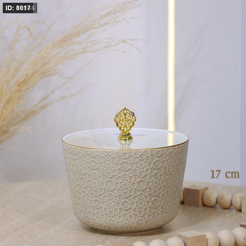 مضيفة 17سم مدور جور بورسلان بيج مزخرف إسلامي غطا اكرالك CAN21-2-KHAKl++9