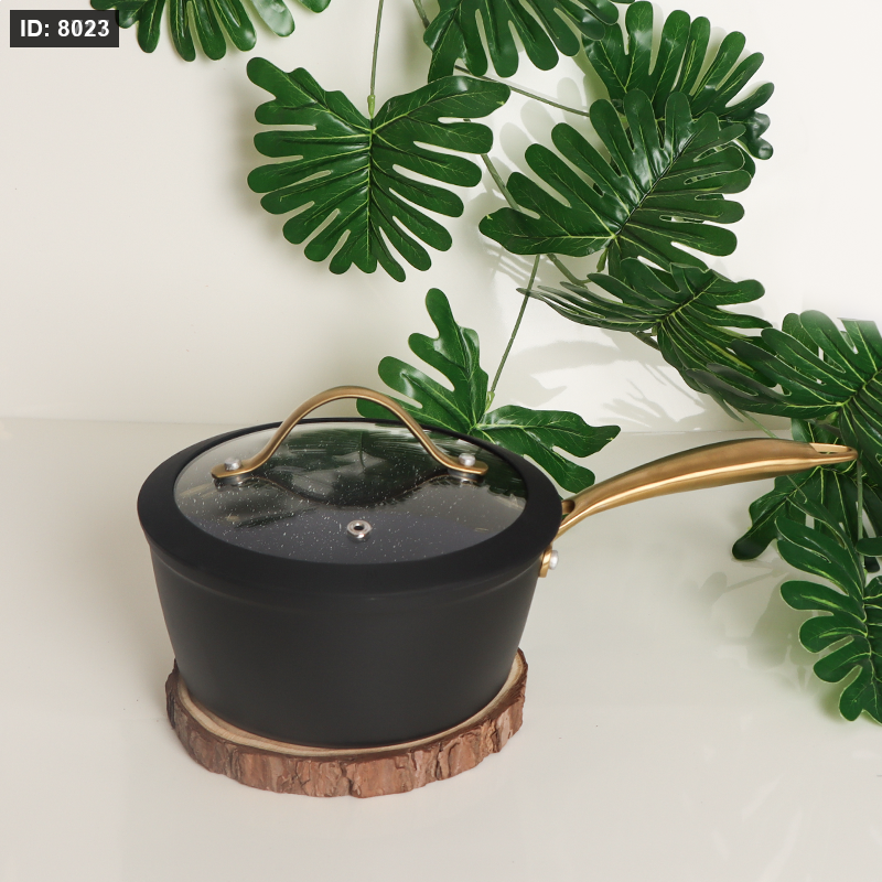 كسرول 18 سم جرانيت اسود ماط يد ذهبي غطا زجاج 5ط%FS-518