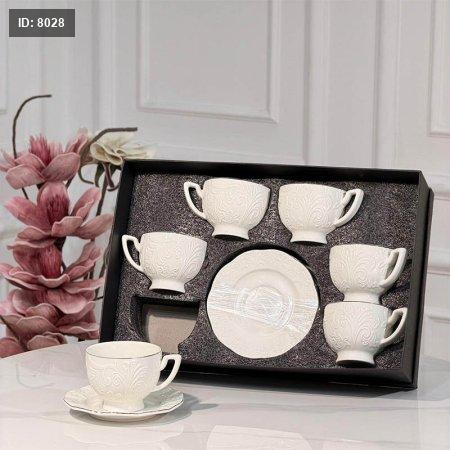 فناجين شاي 6/6 بورسلان ابيض محزز ورق JMD0572++ع 6