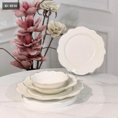 طقم صحون 24 قطعه بورسلان ابيض اطار مشرف بلاتيني JMD0564++ع6