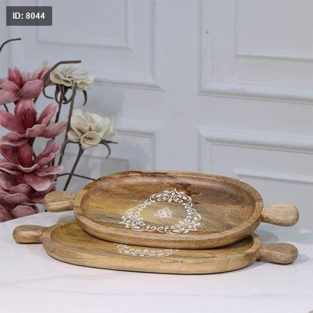 طقم صواني /2 خشب بيضاوي 50+46 سم 89713LSوجه محفر مزخرف ابيض هندي %ס15