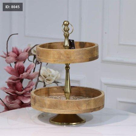 مضيفه 2 طبقه خشب مدور 89715 وجه محفر مزخرف مسكه نحاس هندي %ס15