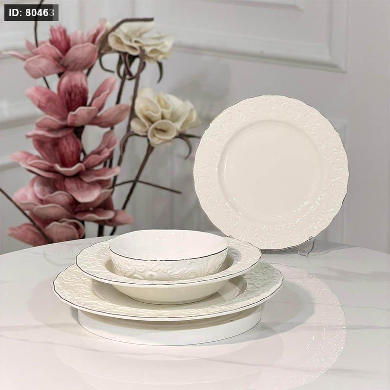 طقم صحون 24 قطعه بورسلان ابيض اطار مزخرف ورق حيف ذهبي JMD0569++ع6